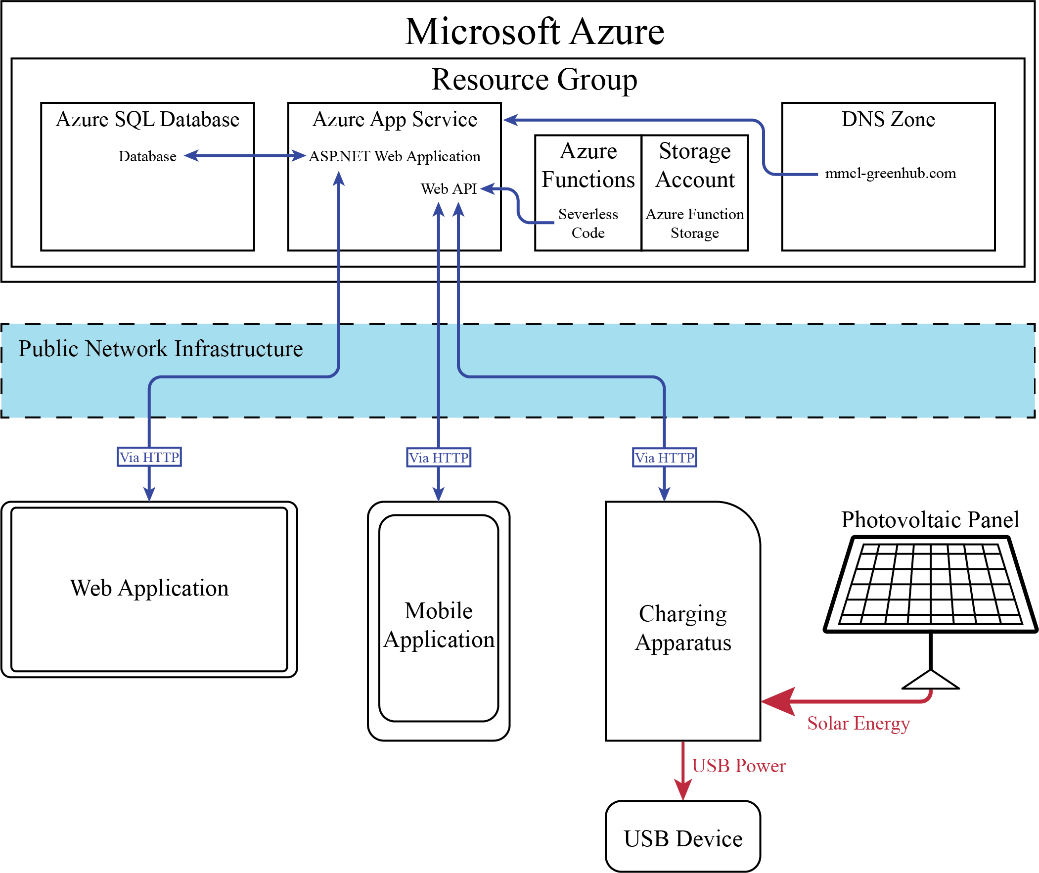 The charging station interfaces with the web application. Charging ports are turned off but can be turned on by the user when he requests charging from the mobile app.